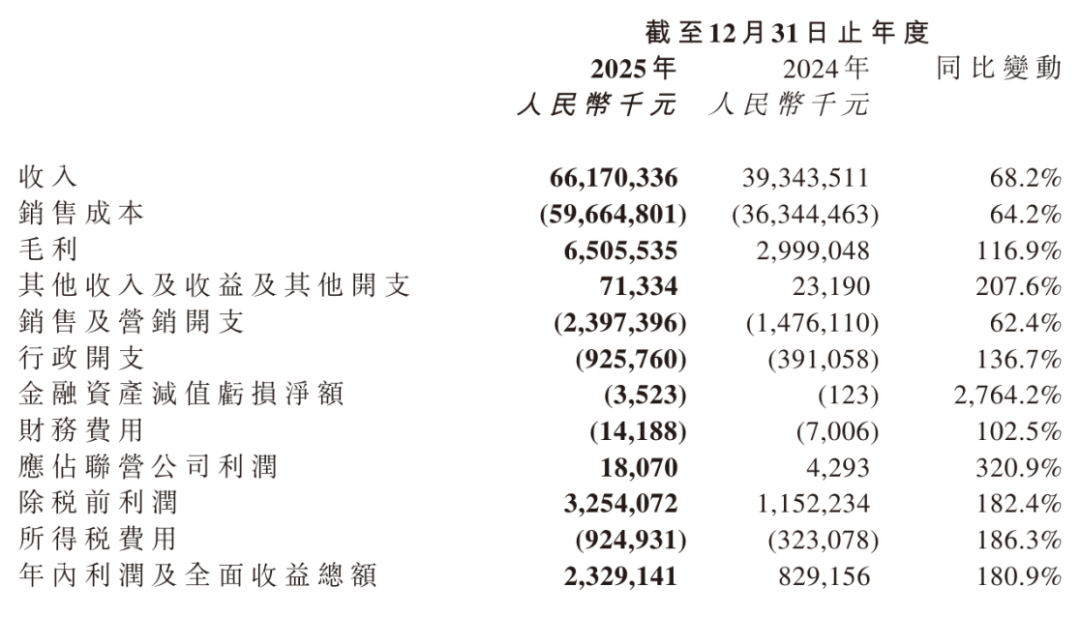 鸣鸣很忙2025年毛利为65亿元,较上年同期的30亿元增长116.9%。