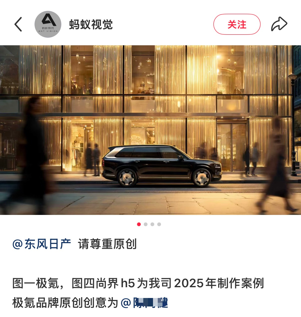 DoNews4月1日消息,4月1日,蚂蚁视觉在社交网络平台喊话东风日产,指其旗下NX8车型的广告宣传图抄袭公司于2025年为极氪9X、尚界H5制作的广告创意。蚂蚁视觉表示,希望东风日产尊重原创。