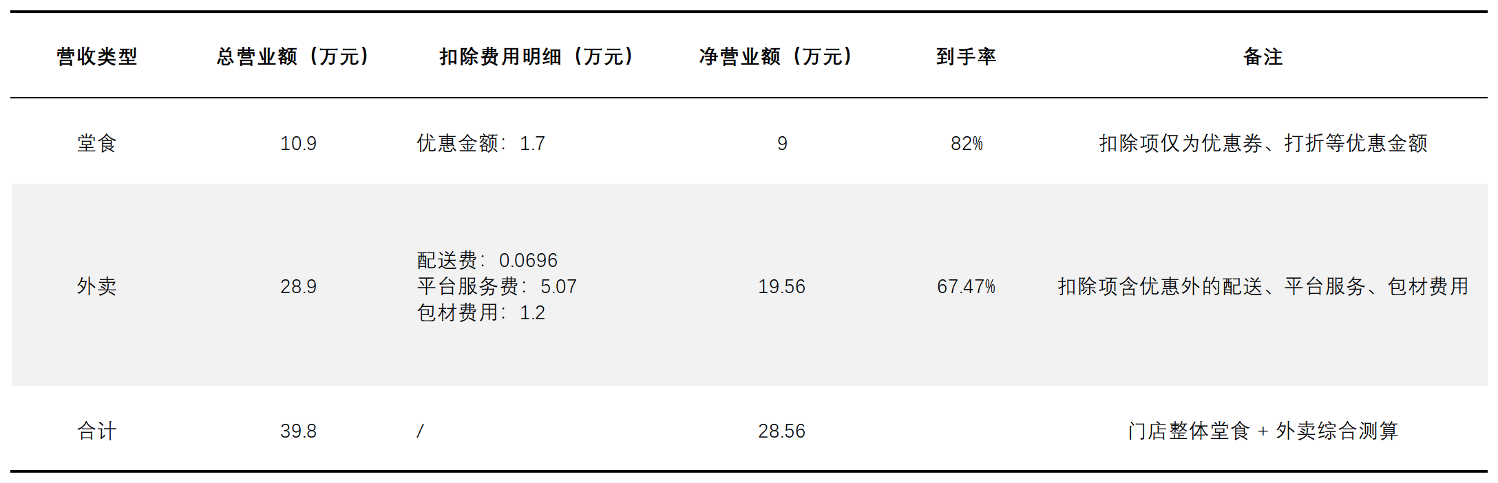 而外卖因同时产生包材费、平台服务费、商家配送费等多项开支,加盟商实际收入大幅折损。以28.9万元的外卖营业额为例,扣除696元配送费、5.07万元平台服务费、1.2万元包材费用后,净营业额仅19.56万元,到手率仅67.47%。也就是说,门店堂食占比越高,加盟商实际收益越可观,这正是霸王茶姬高层对外卖混战持谨慎态度的核心原因。