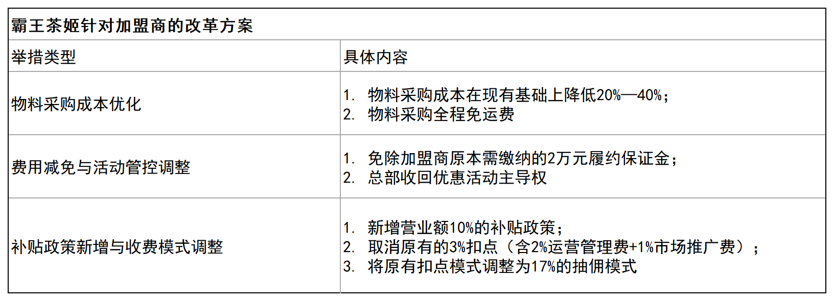 另一方面调整门店运营模式,为加盟商松绑,例如将原有的3%扣点调整为17%营业额抽成、免除部分物料采购成本,还在原有基础上将物料采购成本降低20%—40%等。