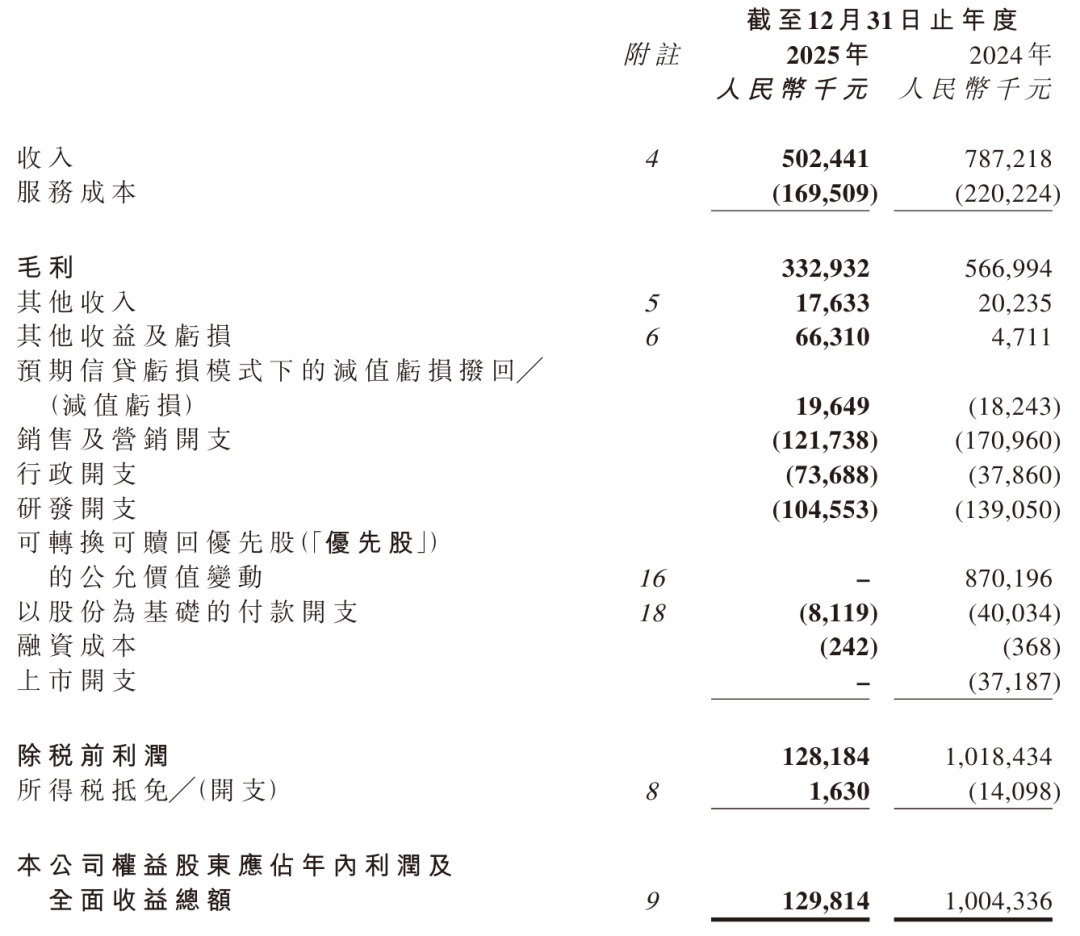 嘀嗒出行2025年研发开支1.05亿,较上年同期的1.39亿元下降24.8%,主要是由于组织精简导致的研发人员数量和研发人员费用的减少。