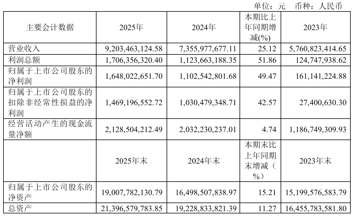 兆易创新2025年净利为16.48亿元,较上年同期的11亿元增长49.47%;扣非后净利为14.69亿元,较上年同期的10.3亿元增长42.57%。