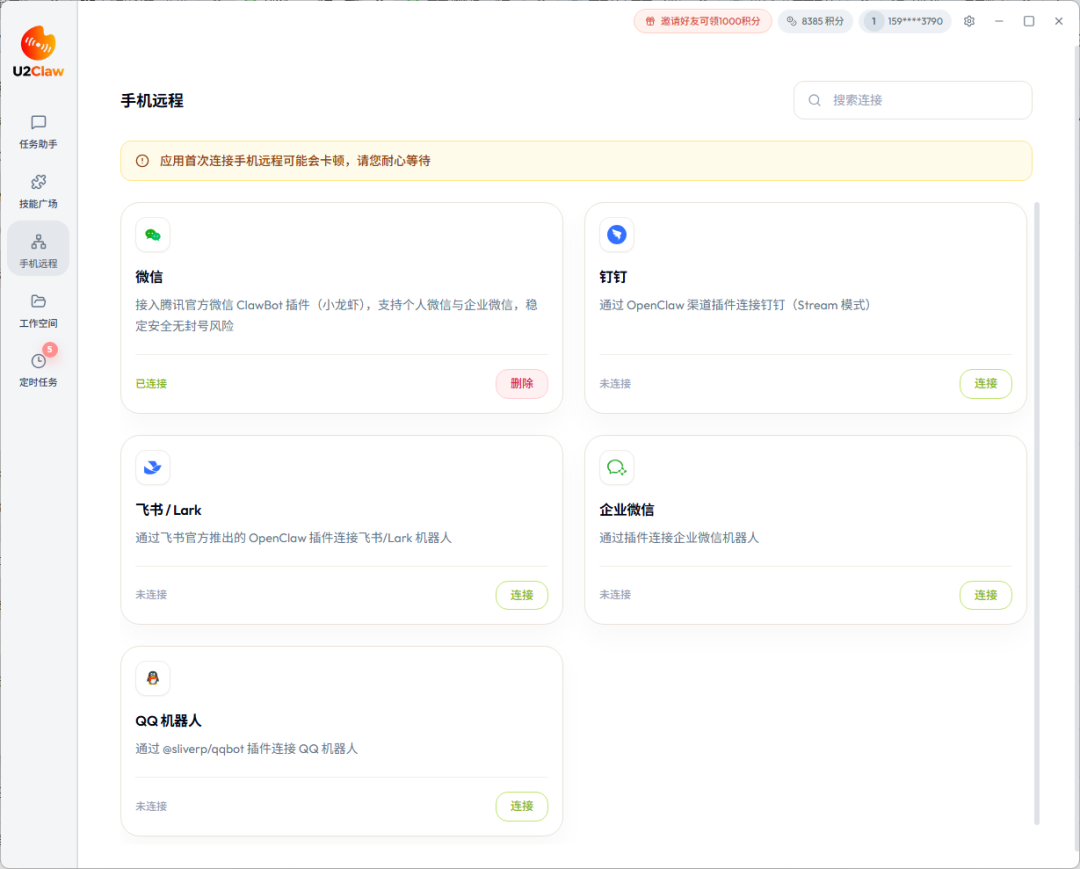 微信互通:接入微信生态,实现手机发令、电脑干活。
