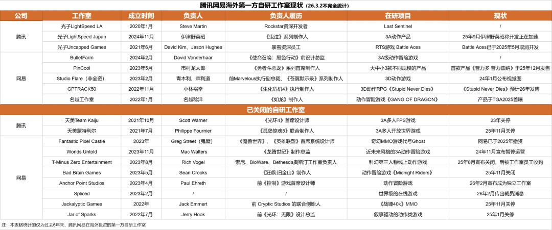 竟核分析认为,中国游戏大厂在海外设立工作室,大多以失败告终,其原因无外乎是以下几点:第一,模式不兼容:中国厂商擅长手游快速迭代、商业化验证,无法容忍 3A 长期试错、高成本低回报的研发模式。