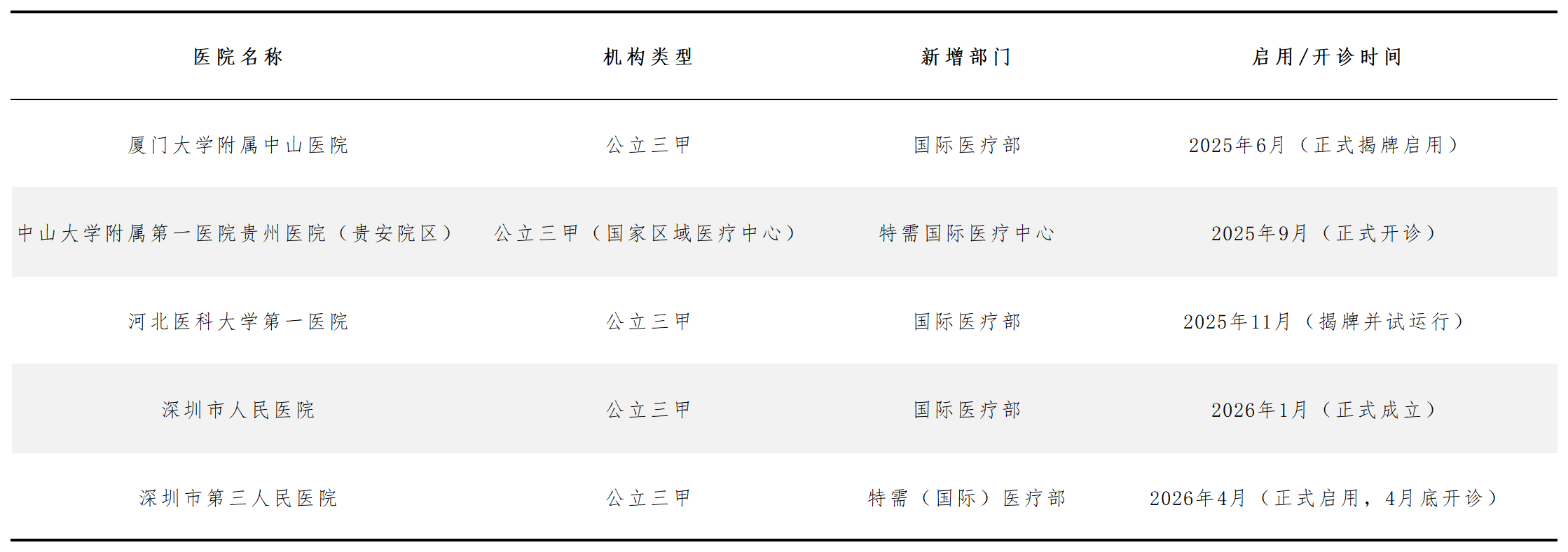 进入2026年,凭借毗邻港澳的区位优势,广东省于3月由省卫健委、省医保局、省药监局联合公布首批国际医疗服务试点医院名单,共25家医院入选。