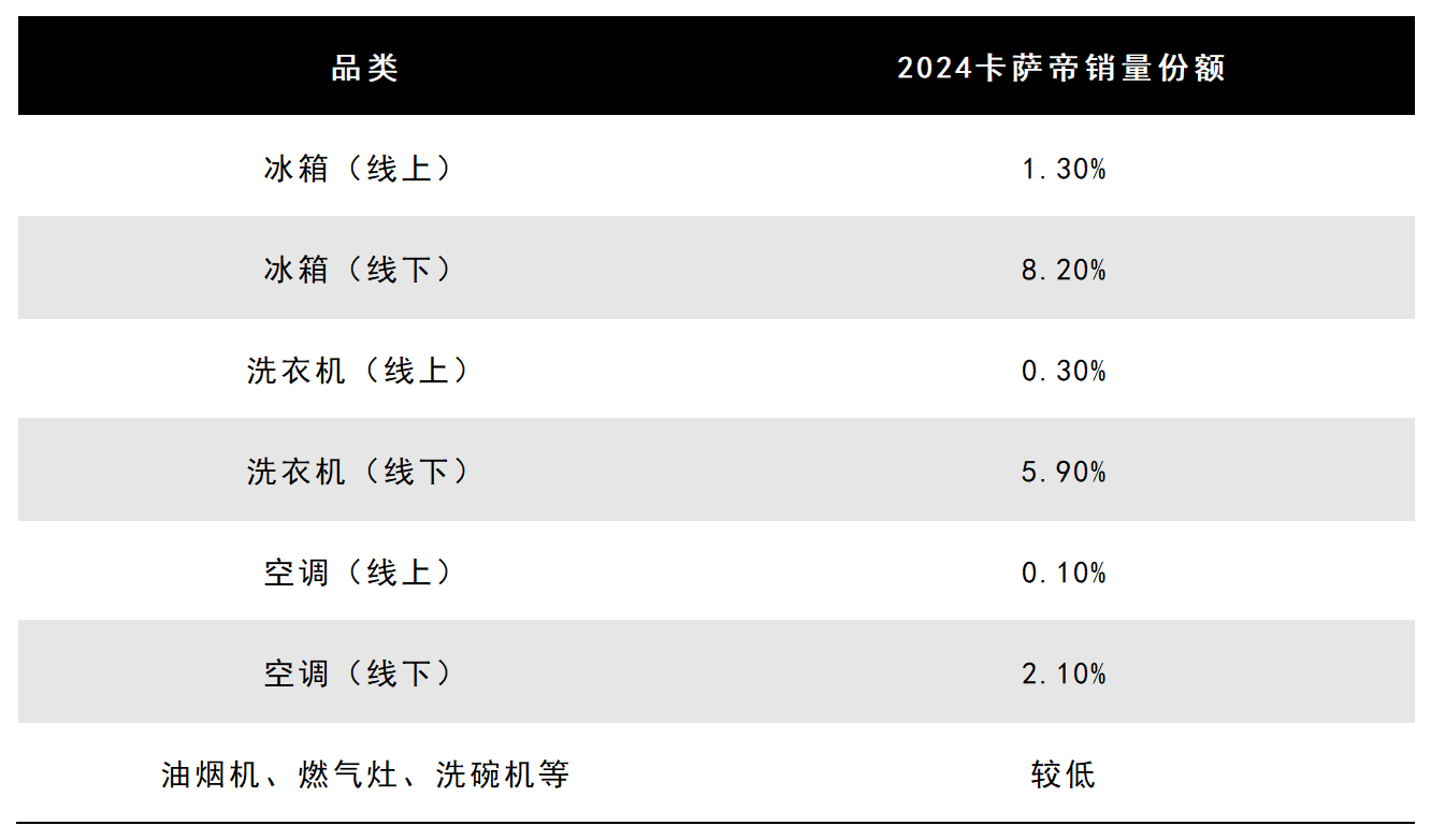 行业数据也印证了这一现实:尚普咨询《2025年中国冰洗套装市场洞察报告》显示,定价10799元以上的高端冰洗套装,以4.1%的销量贡献了35.3%的销售额,呈现典型的“高价值、低覆盖”特征,尽显小众市场本质;西部证券数据显示,海尔旗下高端品牌卡萨帝2024年线下冰箱、洗衣机市占率仅为8.2%、5.9%,其余品类份额则更低。