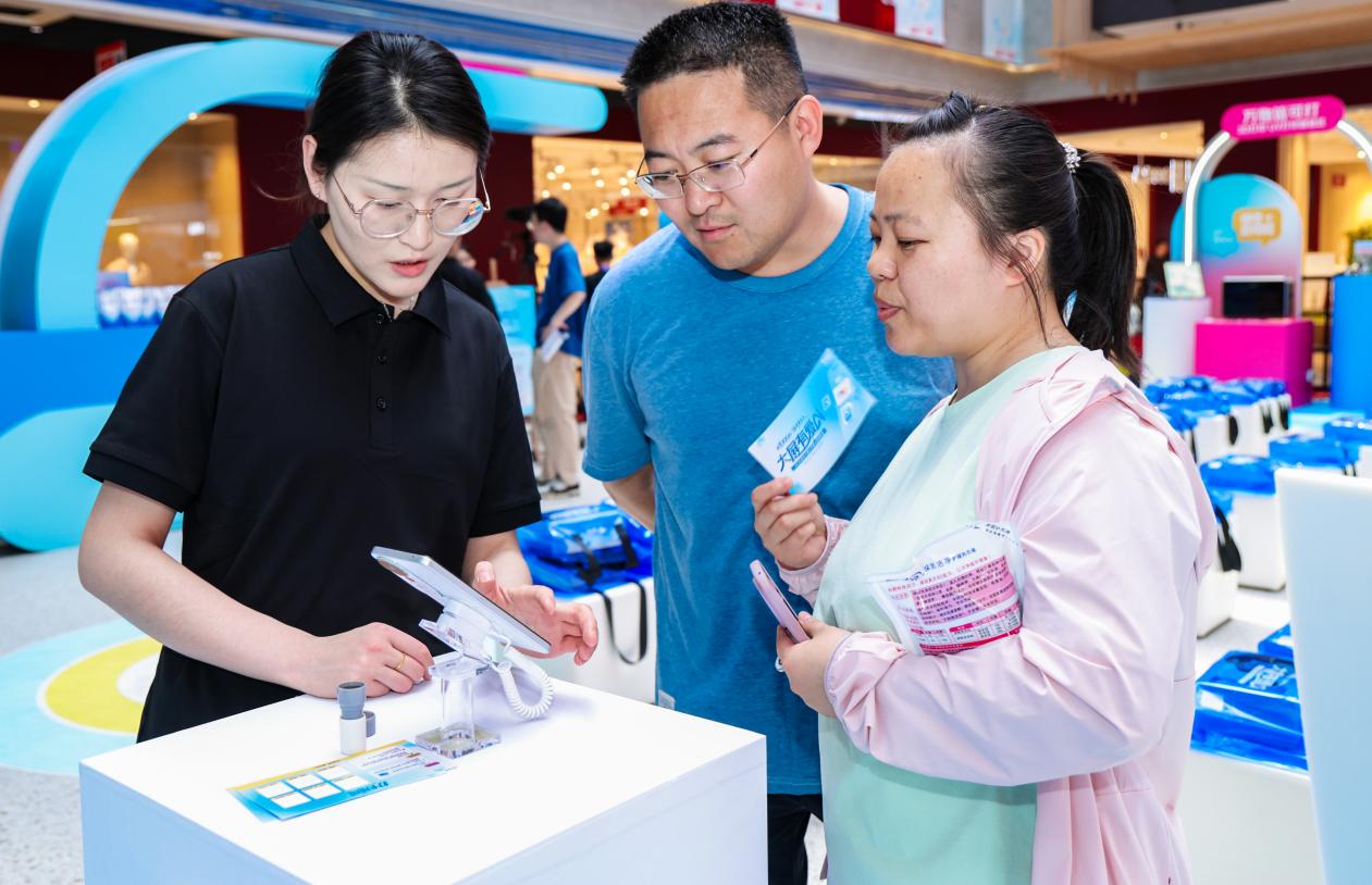 京东采销将荣耀畅玩70 Plus、OPPO A6l等大屏AI手机产品带到现场,为用户详细介绍功能亮点。
