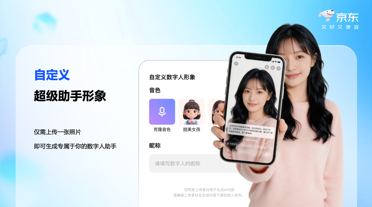 “东东”APP可生成用户自定义数字人