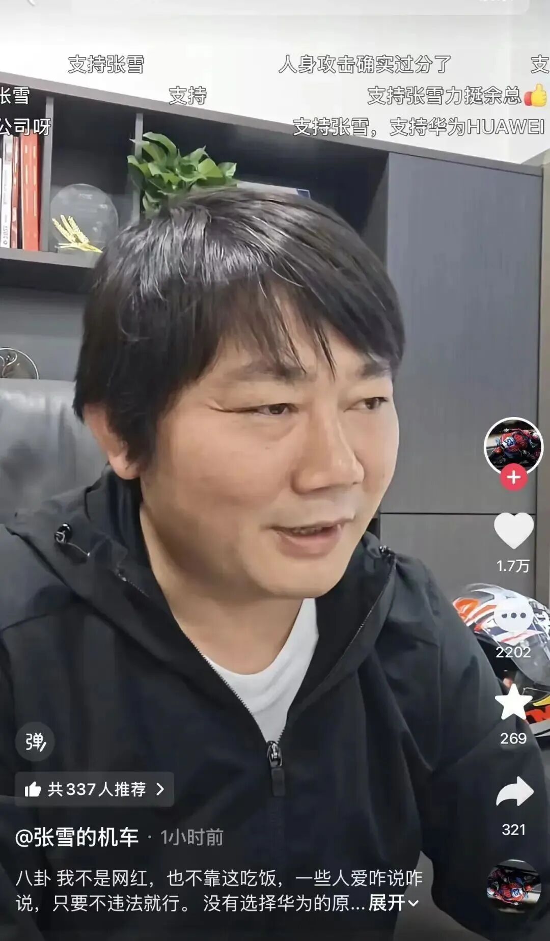张雪进一步表示,“还说我打造人设的,我几十年了都是这样子,我要打造啥?”