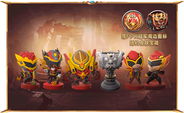 「英雄联盟」S9世界赛冠军 FPX 的冠军手办,已于2020年4月23日正式在英雄联盟官方周边商城上架,该系列手办于2020年4月23日至2020年5月31日期间接受预购,计划于2020年10月起陆续发货。