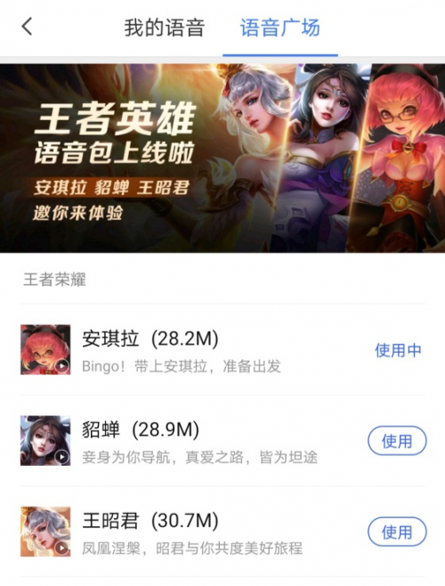 “打开导航的魔法书,安琪拉为你指条路!”、“准备好了吗?和貂蝉一起出发,让我们华丽又漂亮地到达终点!”、“寒冰永不腐朽,昭君导航永不迷路。”新版腾讯地图上线的安琪拉、貂蝉、王昭君三英雄语音包,根据英雄特色定制化设计导航台词,将英雄个性、王者荣耀“黑话”和导航语相结合,极大的增添了出行乐趣。用户通过在个人中心点击【导航语音】,进入【语音广场】,便可以下载三英雄语音包,让王者英雄语音耳畔随行,减少车主长途驾驶的枯燥无味,也给游戏用户出行带来极大的归属感。