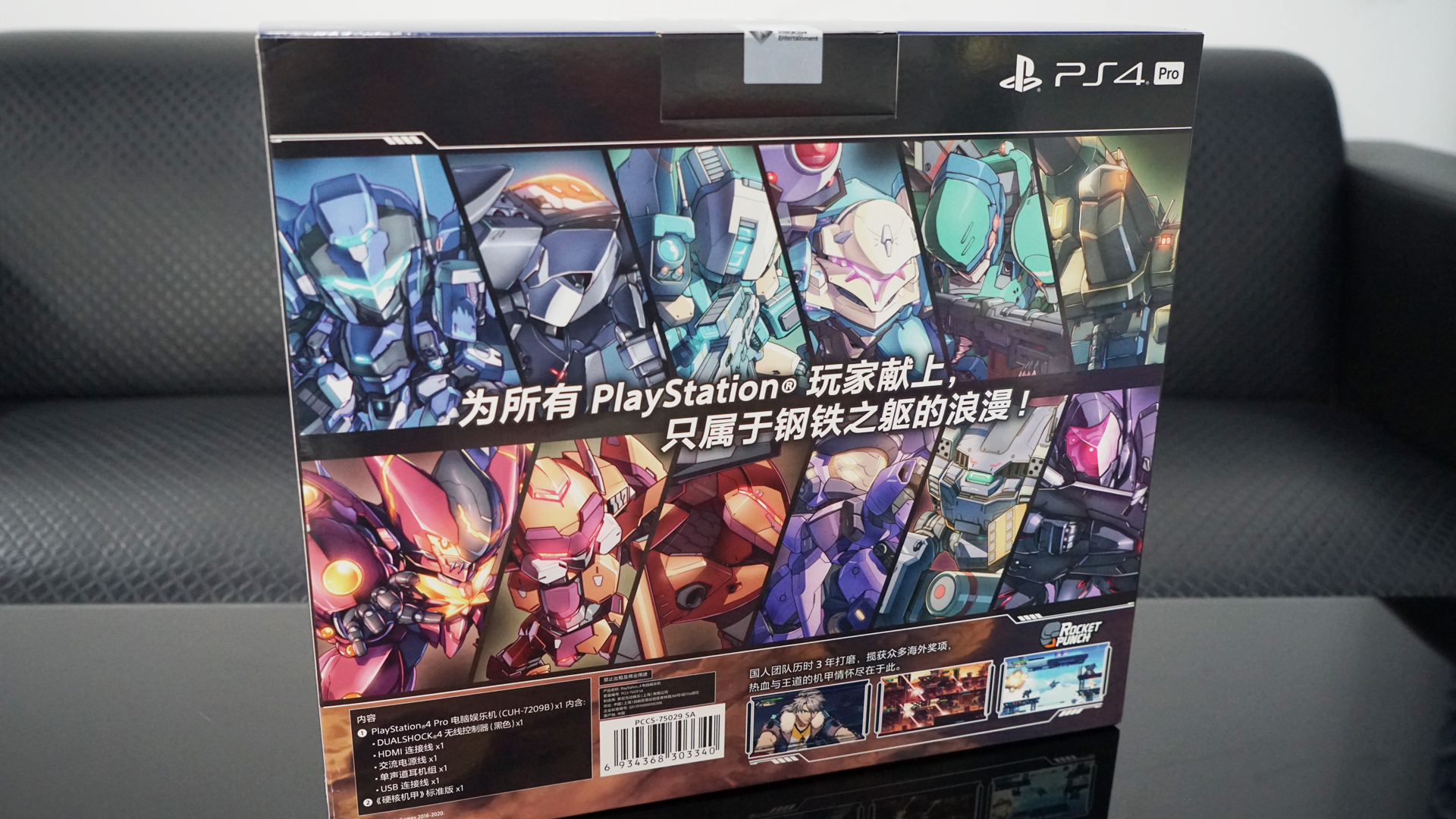 外包装是非常特殊的限定包装,上有《硬核机甲》PS4 Pro限量套装所独有的限定插画,如果是喜欢这款作品的玩家的话必然按不住加入购物车的手。