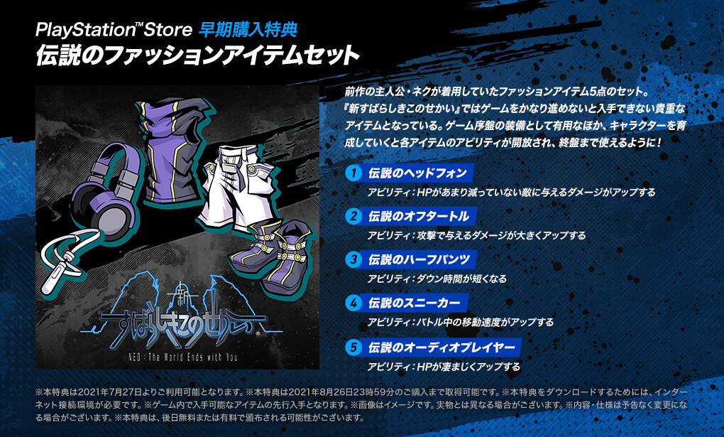 《新美妙世界》将于2021年7月27日发售,登陆PS4和任天堂Switch平台,此外还将于2021年夏季登陆Epic商城。本作SE官方商城的预购特典为“死神游戏生存率提升套装”,数字版预购特典为“传说的潮流道具套装”。