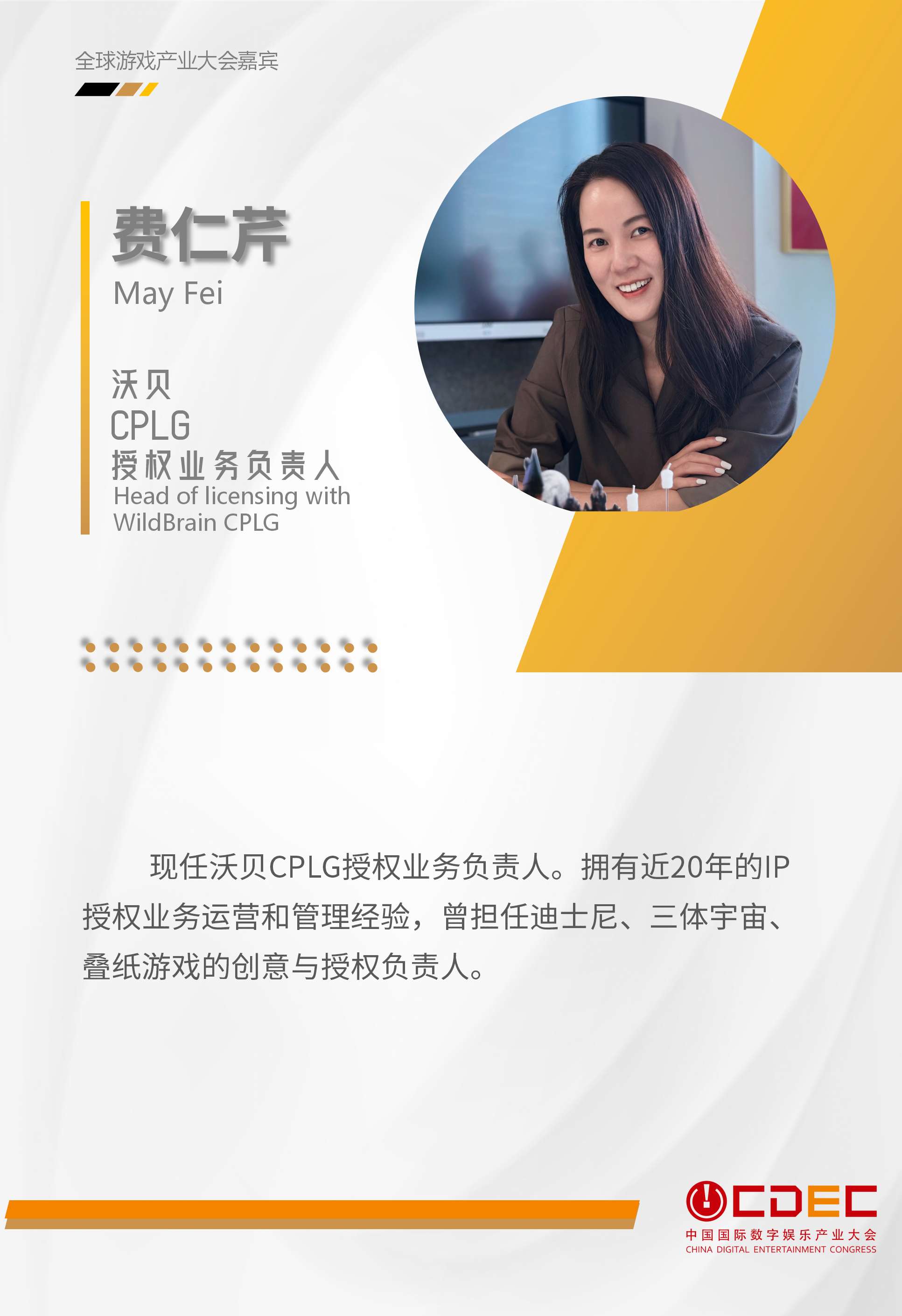 沃贝CPLG授权业务负责人 费仁芹