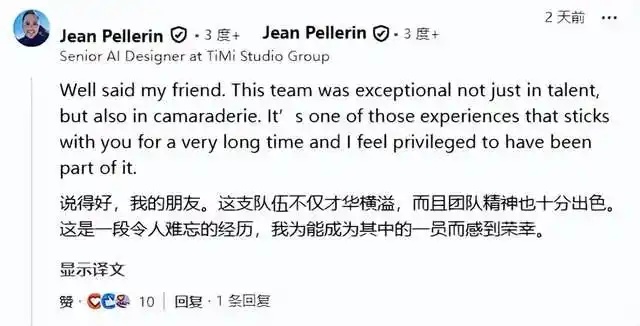而另一位员工则对此回应道:“这个团队不仅人才出众,更在团队氛围上无与伦比。这段任职经历足以让人铭记许久,我很荣幸能成为其中一员”。