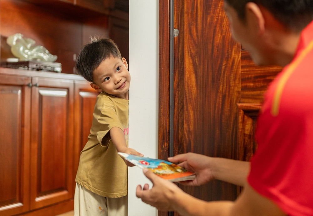 图说:9月4日,三岁的果果捐出了33本自己喜欢的绘本,想要分享给远方的小朋友们。