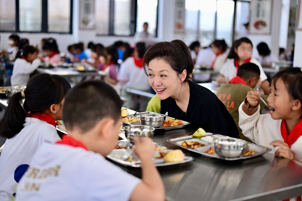 图说:9月8日,“石榴籽计划”贵州公益行期间,项目发起人、主持人海霞探访乡村小学。