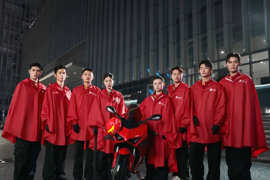 京东外卖还将为全职骑手免费配置红斗篷雨衣。雨衣采用高频热合工艺和双襟结构,防水指数超 20000mmH2O,PVC 防水面料,还有两档可调的袖扣,在骑行时形成隐形风道。