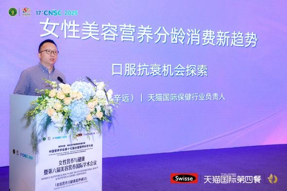 在科研与成分层面充分论证分龄趋势的科学性后,电商平台结合自身优势,分享如何更好地赋能品牌触达消费者。天猫国际保健行业负责人辛远指出:“口服抗衰市场正快速扩张,19-35 岁女性成为消费主力,且需求前置明显。市场品类已转向‘精准分龄抗衰’,聚焦麦角硫因、PQQ等成分。天猫国际第四餐将通过产学研联动、趋势赛道布局,帮助Swisse斯维诗等品牌更快触达目标用户,推动行业科学化发展。”