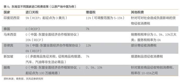 据天风证券2024年研究报告,东南亚各国对中国进口关税多数为0。在RCEP协定框架下,东南亚为商家提供了更稳定和包容的关税政策,能够促进物流成本结构性下降,为商家留下充足的利润空间。