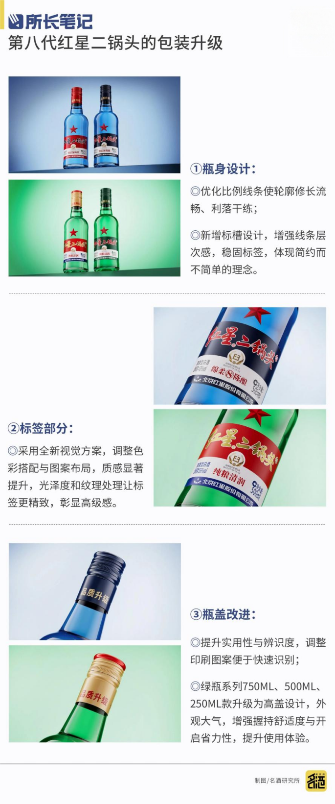 本次焕新升级包含大小二及蓝瓶两个经典系列产品,并从酒体、包装到广告语等多个层面实现全面迭代。