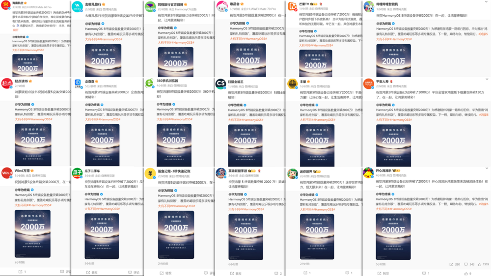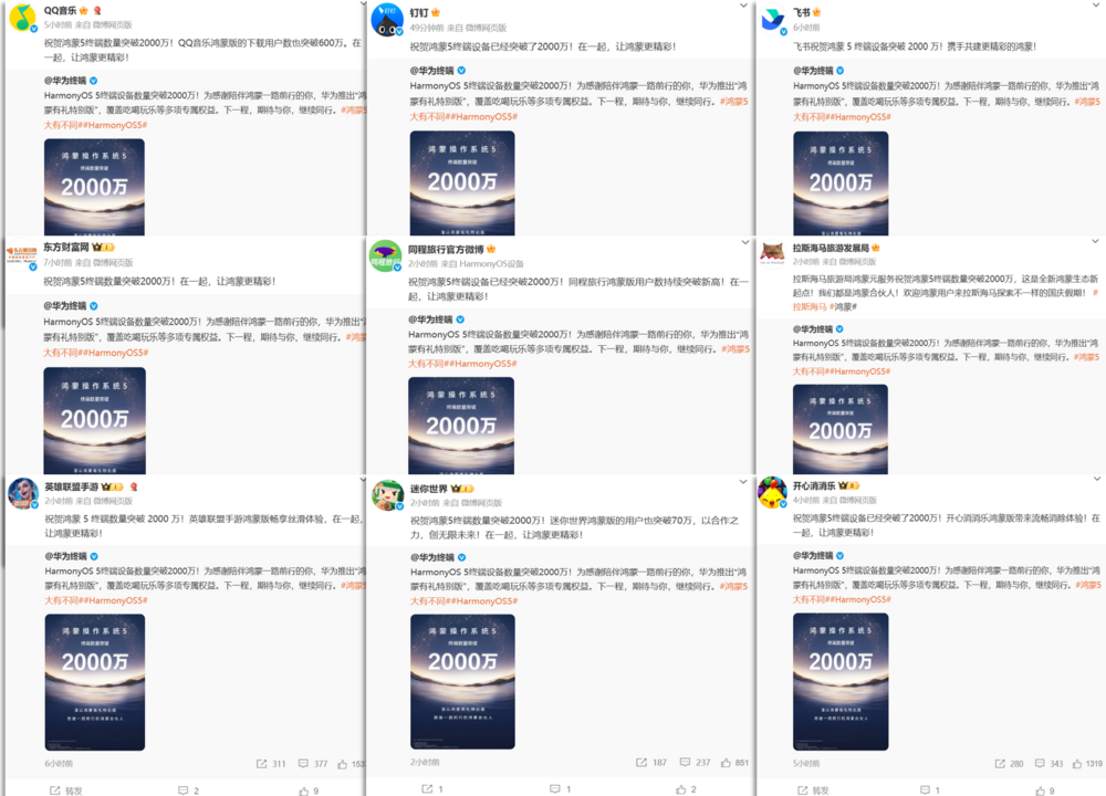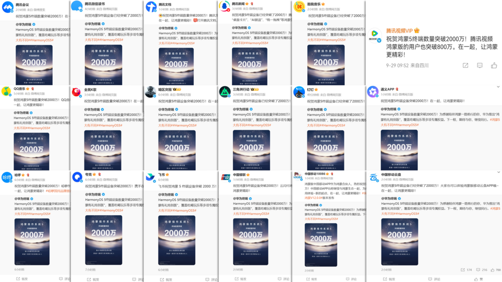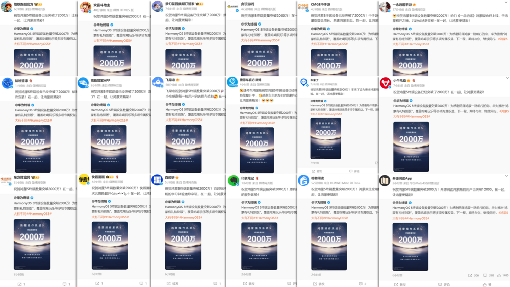 9月29日,华为官方微博宣布,HarmonyOS 5终端设备数量历经两年发展已突破2000万台,近两个月更是增长了1000万。2000万终端设备,不仅是“鸿蒙速度”的又一重要里程碑,更是伙伴、用户与鸿蒙共建、共享“养成系”生态的生动注解。华为官方消息发布后,迅速在社交平台引发热烈响应。来自社交、出行、办公、娱乐、金融等多个领域的超百家合作伙伴纷纷转发互动,共同见证并祝贺这一关键时刻。