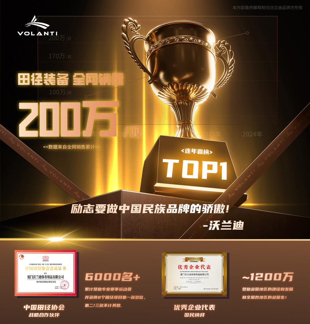 当361°、特步、安踏、李宁等品牌在泛大众运动领域布局,试图覆盖休闲、健身、多品类运动场景时,沃兰迪则聚焦田径赛道,深耕十余年,作为中国首个从专业田径赛场精准切入体考体测的品牌,用“更懂场地竞速”的专业,成为国内田径领域的行业领导者,凭借超高的产品力长期霸榜各大电商平台。