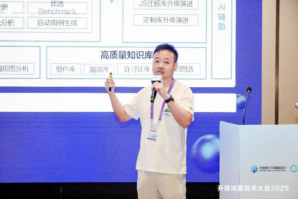 OSS—Compass社区AI工作组组长、华为高级工程师齐国强以“开源之道”为引,介绍了开源社区的核心要素与运作模式,并系统阐释了其生态构成。他指出,学术研究与产业实践对开源的观察视角正日趋融合,数据和评估方法成为共性需求。当前,OSS—Compass社区面向软件制品、人和协作提出三维(生产力、创新力、稳健性)评估体系以及SaaS平台,为社区生态分析、治理提供了科学、可量化的“开源之器”。OSS—Compass社区基于核心能力打造开源鸿蒙跨平台框架及三方库治理和社区体验提升的综合解决方案。后续,社区将在跨平台框架PMC(筹)的指导下,持续承担关键专项。通过开放治理与社区化运作,以技术开发与生态发展的双轮驱动模式,有效提升开源鸿蒙跨平台框架的技术竞争力与社区生态活力。