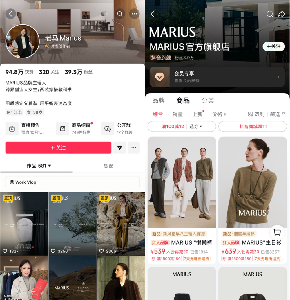 不少商家通过主理人直播、风格内容种草、产品研发创新等方式提升消费者粘性,拉动整体销量增长。在新锐服饰商家领域,品牌店播持续发展,Marius品牌经营者老马介绍,Marius品牌通过精细化运营店播,将主理人IP价值最大化,创造了销售额同比增长近5倍的亮眼成绩,成为高客单服饰品牌数字化转型的典范。