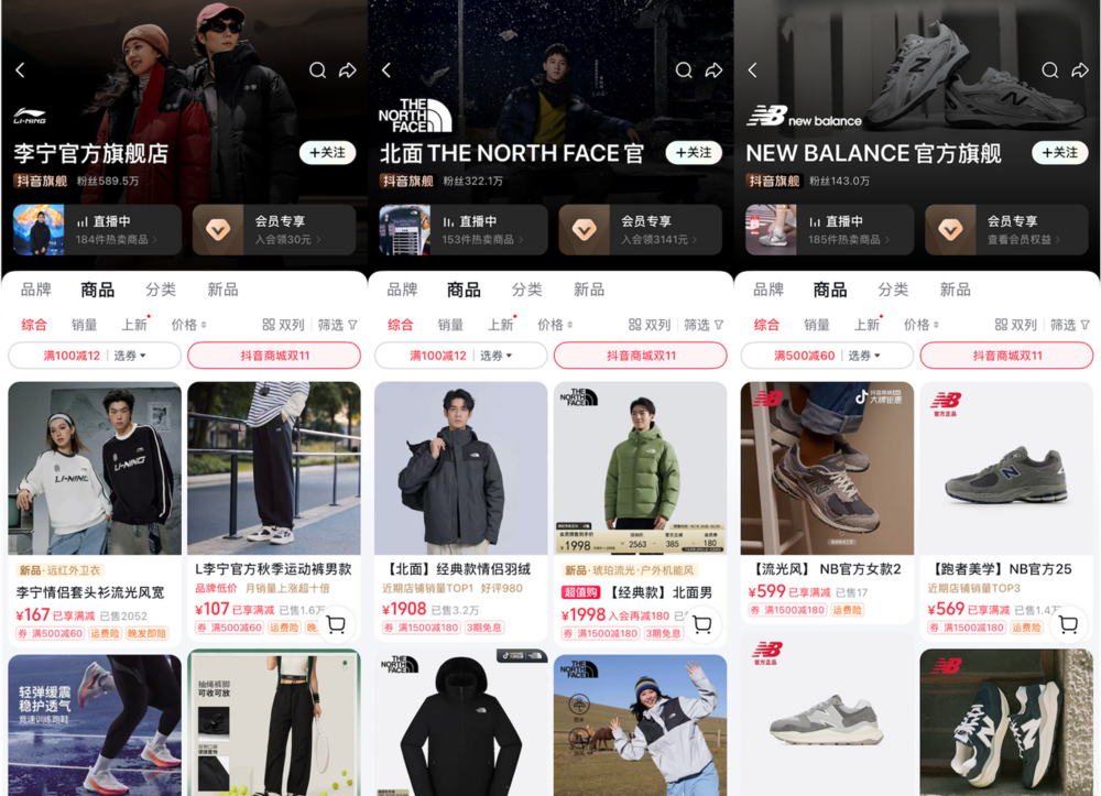 李宁、北面、New Balance参与抖音电商“双11”促消费