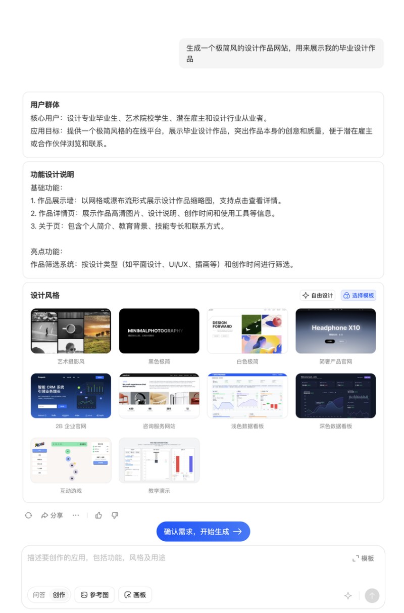 据悉,豆包编程的创作模式背后搭载自研的编程模型,具备更优的多模态识别、更好的应用生成美观度,并具备复杂任务规划与工具调用能力,能确保生成结果更稳、更美、更贴合用户意图。