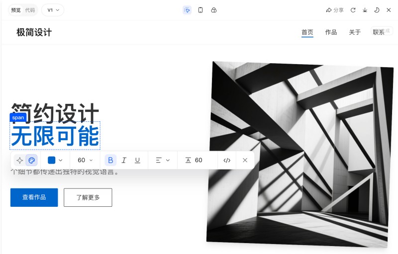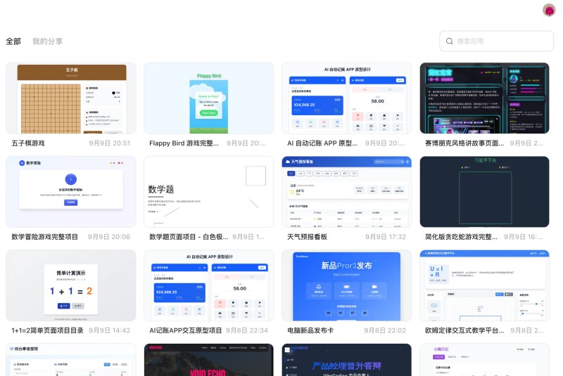 平台支持一键分享作品或下载代码。如需查看往期作品,用户可在“我的应用”功能中对历史作品进行可视化管理,提高项目查找效率。