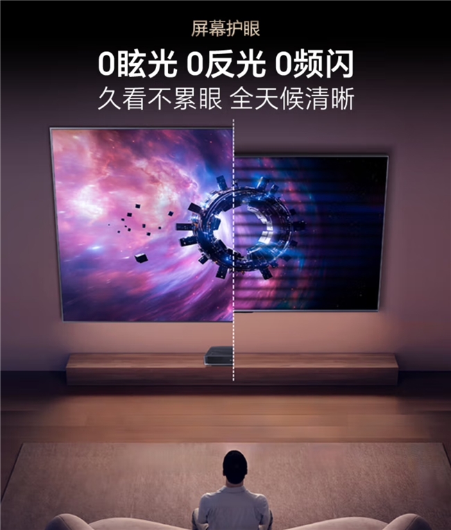 护眼,是激光电视的品类优势所在。激光电视采用反射式成像原理,光线通过屏幕反射至人眼,光对眼睛的刺激要比传统电视小得多。作为行业领导者,海信激光电视的护眼技术更是遥遥领先。是行业中唯一能做到“0”有害蓝光的电视。星光S1系列继承了海信激光电视的护眼“基因”,从源头阻断了有害蓝光。在日常生活中,哪怕是连续追剧数小时,眼睛也不会干涩或模糊,更好地呵护用眼健康。