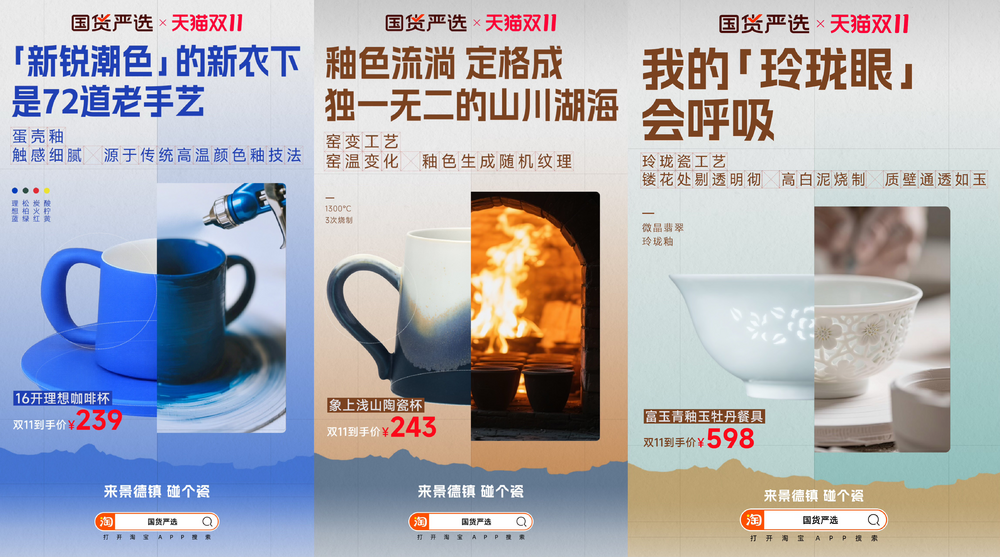 这个双 11 期间,主打源头工厂直供的质价比平台淘宝国货严选上线了不少新供给,来自景德镇源头厂商的千余款特色餐具水具成为这届年轻人挖宝体验新供给的好选择。