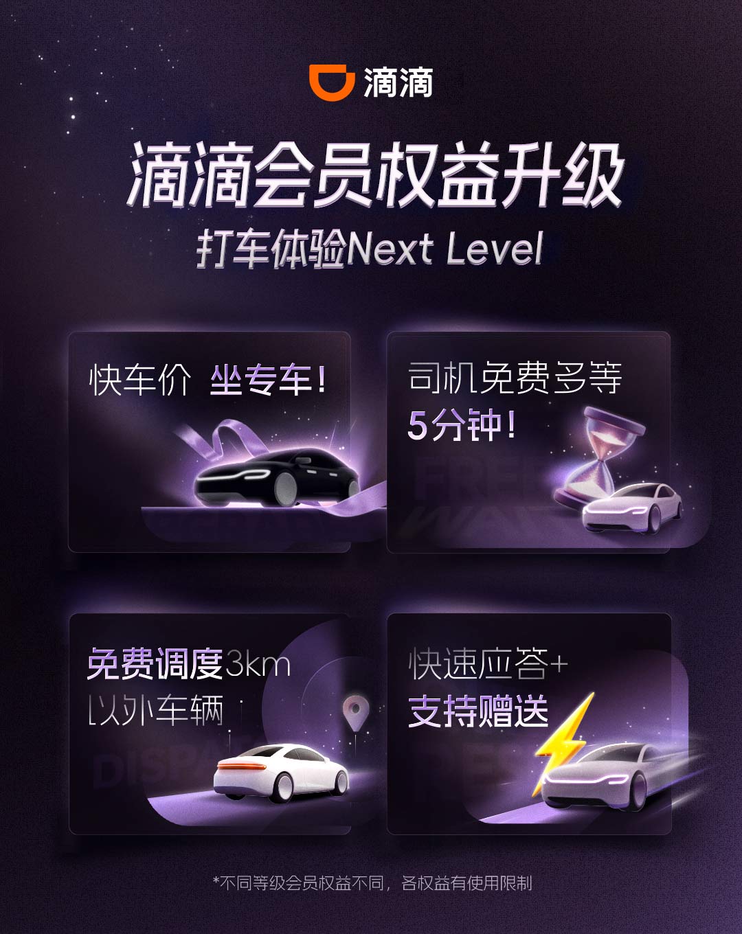 在用车时,难免会因为临时出现的小变化打乱原本的出行计划,滴滴会员结合用户需求调研,以服务用户为本心出发,帮助用户抚平出行时的小褶皱。本次权益升级聚焦在打车权益类别,新增免费等待、免费远程调度、快速应答+分享权益,更新免费升舱权益,以不断丰富用户的打车体验,提供更多维的权益保障。