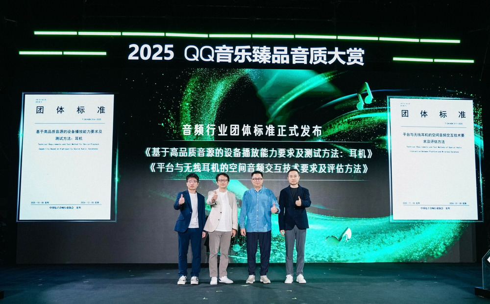 在本次【2025 QQ音乐臻品音质大赏】中,QQ音乐还联合中国电子音响行业协会,共同发布音频行业新标准《基于高品质音源的设备播放能力要求及测试方法:耳机》《基于平台与无线耳机的空间音频交互技术要求》,让音频质量评鉴有据可依,持续推动中国音频行业品质升级。