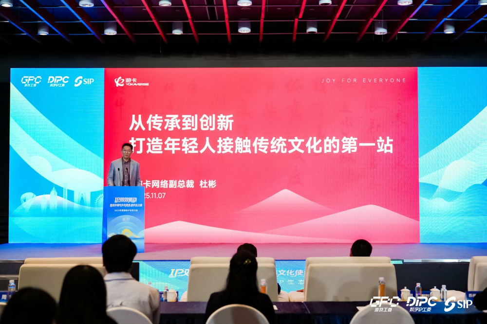 11月7日,由“中国音像与数字出版协会”主办的“2025游戏IP生态大会”在苏州举行,游卡副总裁杜彬受邀出席,并在活动中发表《从传承到创新,打造年轻人接触传统文化的第一站》的主题演讲。