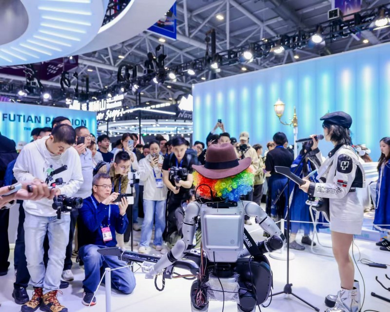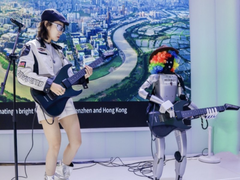在高交会现场,一场别开生面的“音乐会”引发了围观热潮。机器人化身为一流的“演奏家”,身背AeroBand空气乐队吉他,与音乐人同台献艺,带来了许多耳熟能详的歌曲。现场观众里三层外三层,纷纷举起手机记录这一奇观。