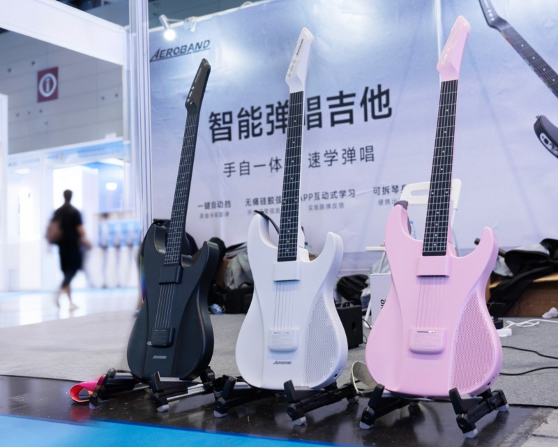 本次展会,AeroBand空气乐队重点展示爆款产品——AeroBand空气乐队吉他。AeroBand空气乐队吉他,全球手自一体智能吉他开创者。曾获2023年红点设计奖。产品主要功能点为手自一体、旋律伴唱、APP互动式学习和无痛硅胶弦。重新定义音乐体验,乐享进阶无限可能。