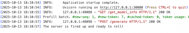 后续实验需要利用该服务,因此需确保后端服务处于正常开启状态。可以再另开一个terminal进行操作,或者用nohup/tmux/screen将当前服务切换到后台运行。