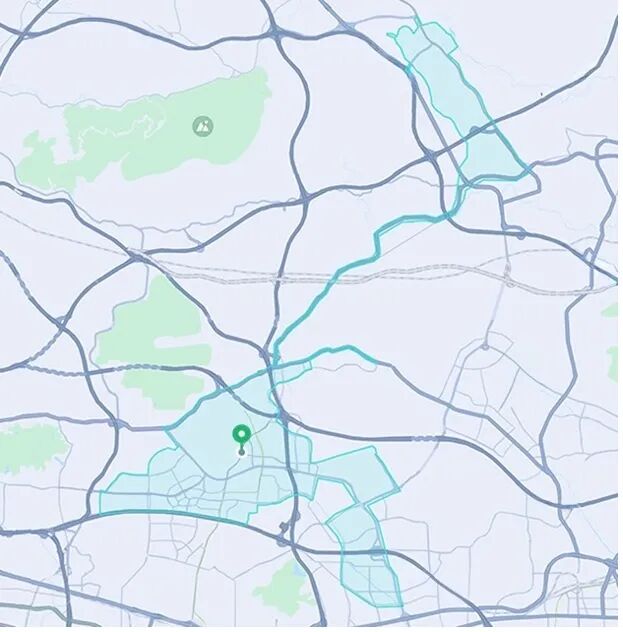 图为:滴滴自动驾驶在广州的全天候、全无人Robotaxi服务试运行区域