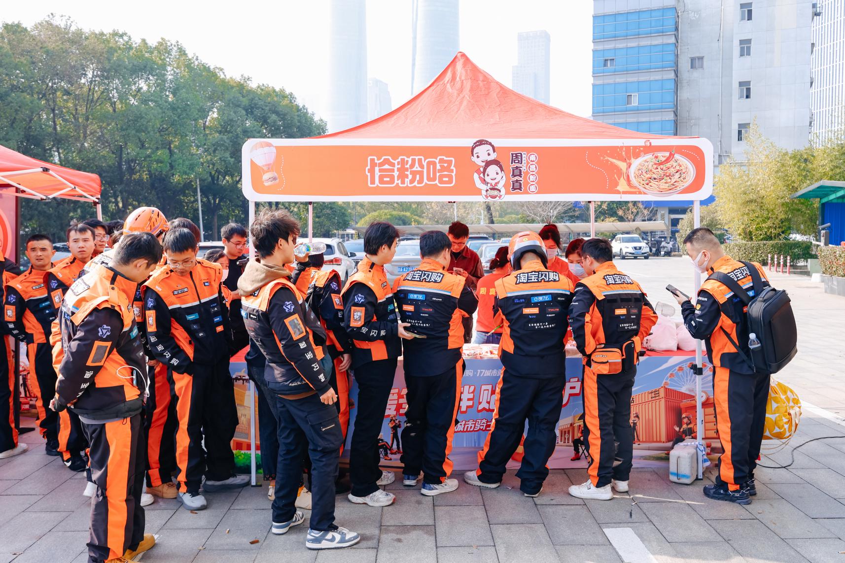 12月17日,淘宝闪购在南昌的“17·骑士日”活动现场,城市骑士进行美食游园会。