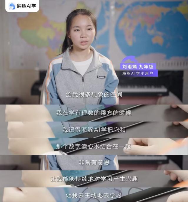 - 来自辽宁大连的刘雨嫣同学,曾一度对学习缺乏兴趣,通过海豚AI学的长期陪伴,她逐渐在学习中收获快感,最终逆袭升至年级前五名。她提到,“我记得海豚AI学把有理数的乘方和数字读心术结合在一起非常有意思,让我能够持续低对学习产生兴趣,让我主动地去学习。”