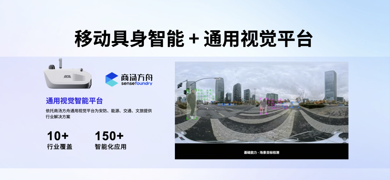 此外,大晓机器人结合Insta360 全景感知方案与商汤方舟通用视觉平台,构建起全方位、高精度的环境感知体系。不仅能覆盖超10个行业,还可实现超150个智能化应用场景适配,覆盖从日常行为分析到特殊风险预警的全需求。
