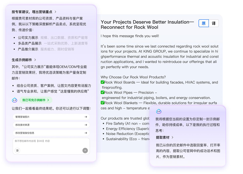 今年,黄瑞华把AI引入团队负责开发全球客户,OKKI AiReach自动挖出高质量潜客后,还会基于不同国家与客户背景,自动生成本地化、小语种营销内容,不堆参数,而是从使用场景与核心痛点切入,把复杂技术翻译成客户能理解的信息。其中一位新兴市场客户,正是通过OKKI AiReach撰写的小语种营销信首次了解产品,并迅速表达采购意向。结合OKKI AiReach自动背调出的客户信息,业务员接力多渠道跟进,30天内完成了新客户成交。