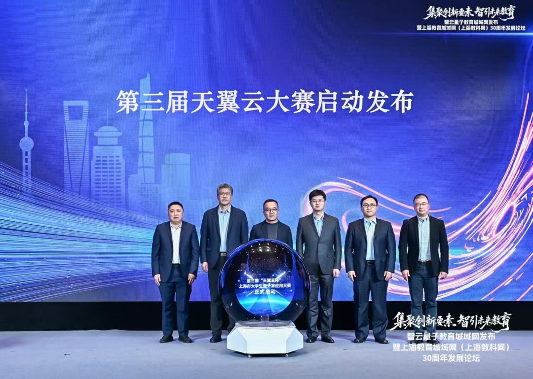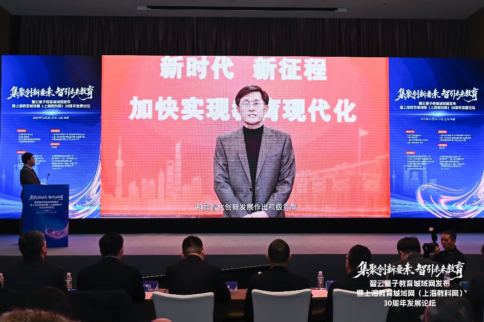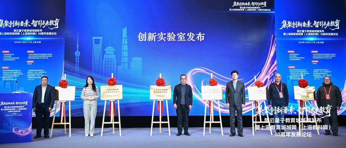 2025年12月26日,在智云量子教育城域网发布暨上海教育城域网三十周年发展论坛上,上海市数据局副局长翁轶丛、中国电信上海公司副总经理龚豪、上海市教育委员会信息化工作处处长韩崇虎、上海市大数据中心副主任王明政、上海市经济和信息化委员会人工智能发展处副处长陈钊共同启动“智云量子教育城域网”。