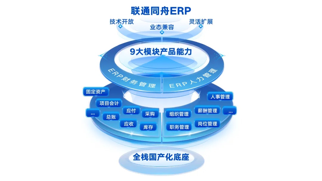 “联通同舟ERP”系统以自主创新技术为内核,构建起功能灵活适配、性能行业领先、实施安全可控的全栈式数字化体系,不仅实现企业内部管理效能的质的飞跃,更打造出一套可复用、可推广的央国企国产化转型标杆范式: