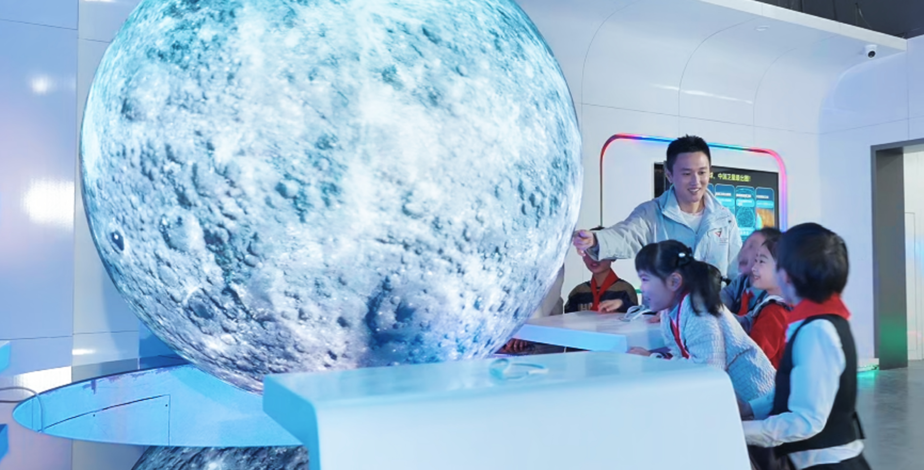 体验中心独具匠心地引入了“项目式学习”理念,精心构筑了一个影院般身临其境的科技空间。这里共设置了“未来星际探险家”、“星际城市建造师”、“航天文化外交官”等四个主题探索挑战和17个进阶式互动体验场景,以游戏化闯关、任务挑战和个性化成长荣誉系统,引导青少年像艺术家一样想象、像科学家一样思考、像工程师一样实践、像航天员一样探索,从而构建完整的科学成长体系。让青少年在实践中主动探索,全方位提升科学素养与创新能力。