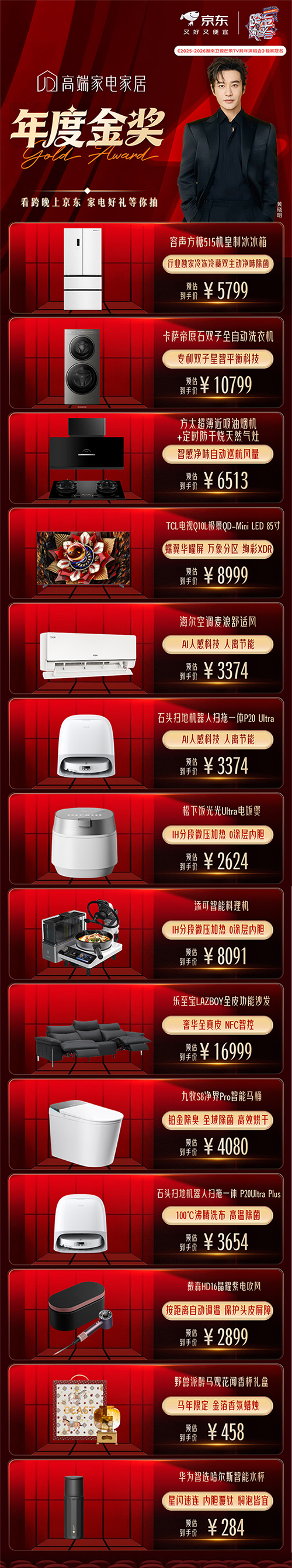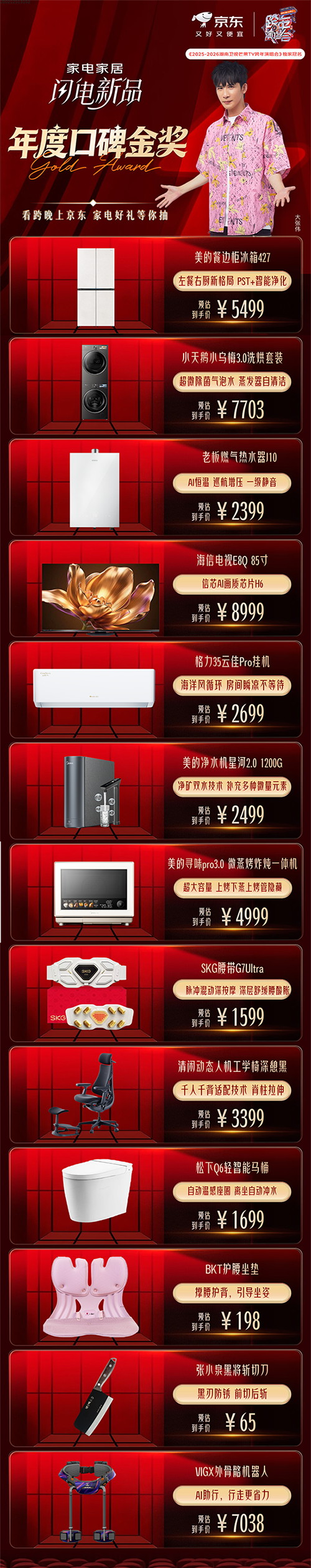 此外,秉持着对品质的坚守,京东家电家居“闪电新品”与京东金榜全面评估产品销售热度、用户关注人气、用户口碑、品牌力及产品增速等5大维度数据,联合推出了2025年新品年度金榜、2025年高端家电家居年度金榜,涵盖九大细分榜单。
