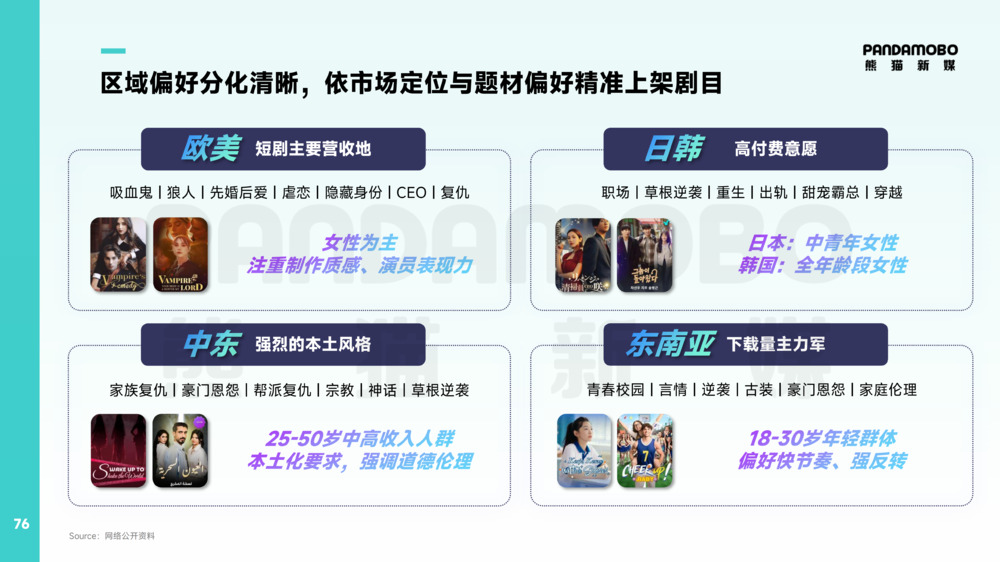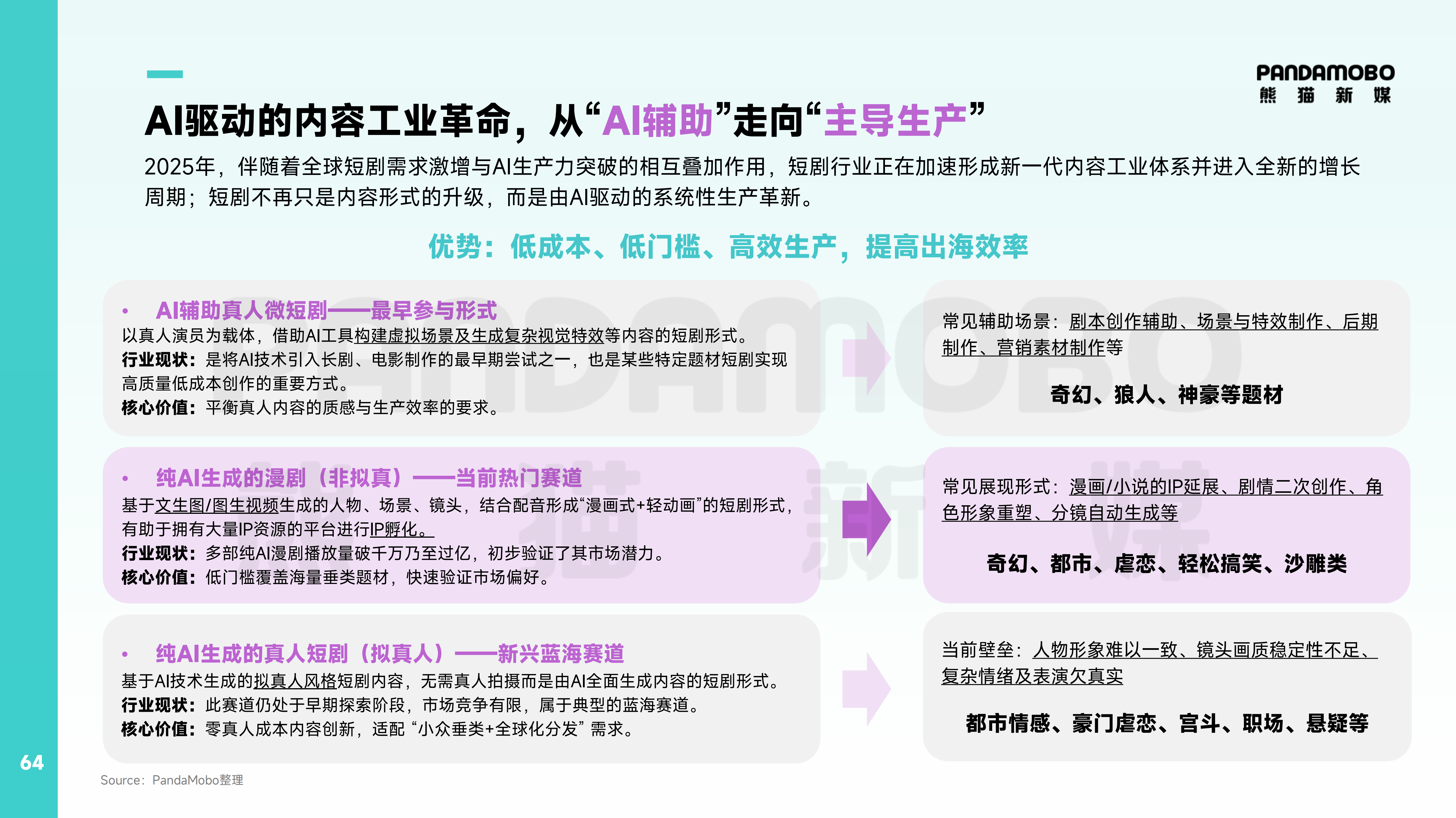 依托在短剧出海领域的深厚积累,目前,PandaMobo已构建从内容本土化适配、AI工具应用到全渠道投放的闭环服务,相关案例在报告中提供了可复用的营销方法论。